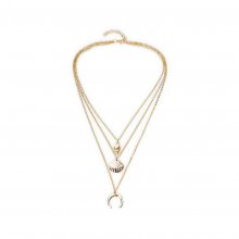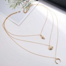 Number of layers: 3. Length: 18 in. + 2.6 in., 20 in. + 2.6 in., 22.2 in. + 2.6 in. Pendants: seashels and moon. Color: gold-toned. Weight: 0.8 oz. Material: alloy.