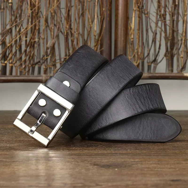The rich texture of natural cowhide leather gives each belt a unique finish that only gets better with age. A solid stainless steel pin buckle adds a bold yet classic touch, securely fastening the belt while enhancing its rustic appeal. With its simple, solid pattern and multiple colors—black, brown, khaki, and red-brown—this belt seamlessly fits a variety of personal styles and occasions.