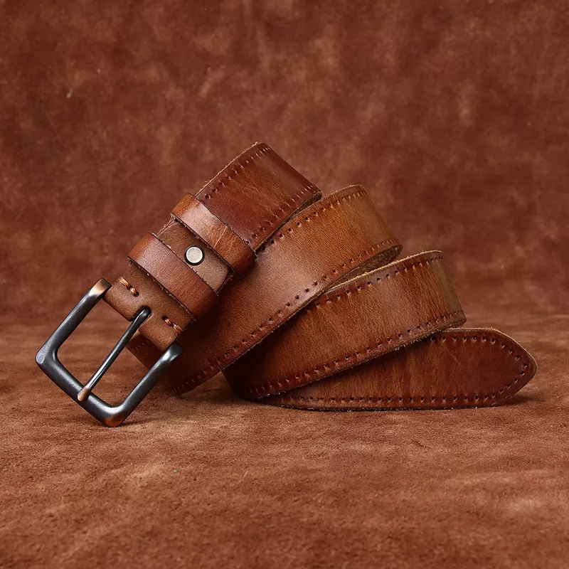 Introducing the vintage vegetable-tanned leather belt for men who appreciate authenticity. Crafted using time-honored methods, this belt doesn’t just accessorize your outfit—it becomes a part of your personal narrative.