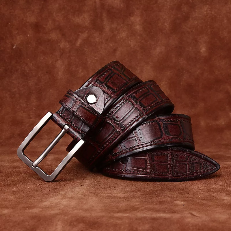 Upgrade your wardrobe with this premium crocodile embossed cowhide leather belt, crafted for the modern man who values both style and substance. Made from the top layer of genuine cowhide, this 1.5-inch (3.8cm) wide belt combines strength, elegance, and versatility. Its sophisticated crocodile texture and classic needle buckle create a bold statement that effortlessly complements jeans, chinos, or casual trousers.