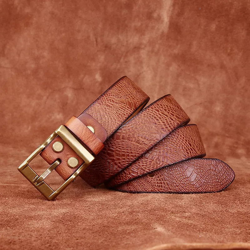 The difference is in the details. Unlike synthetic or bonded leather belts, this genuine cowhide belt develops a beautiful patina over time, reflecting your lifestyle and character. The solid brass buckle adds a touch of vintage charm while offering superior strength and reliability.
