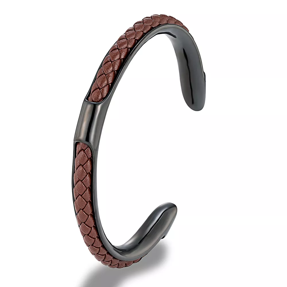 Men’s Stainless Steel Woven Leather Cuff Bracelet – Minimalist Fashion Jewelry