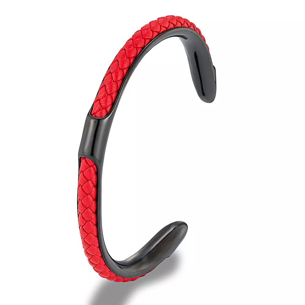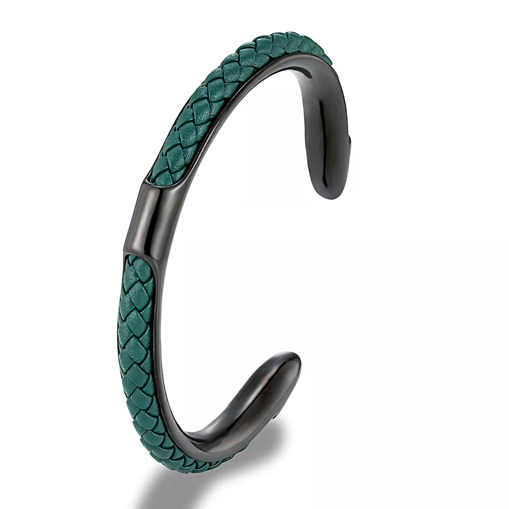 Discover the perfect blend of rugged sophistication and modern design with this stainless steel woven leather cuff bracelet for men. Crafted to complement any look, from casual to sharp business attire, this bracelet is a versatile accessory that adds a touch of boldness and refinement to your everyday style. The woven leather detail wrapped in durable stainless steel creates a unique texture that stands out without overwhelming your wrist.