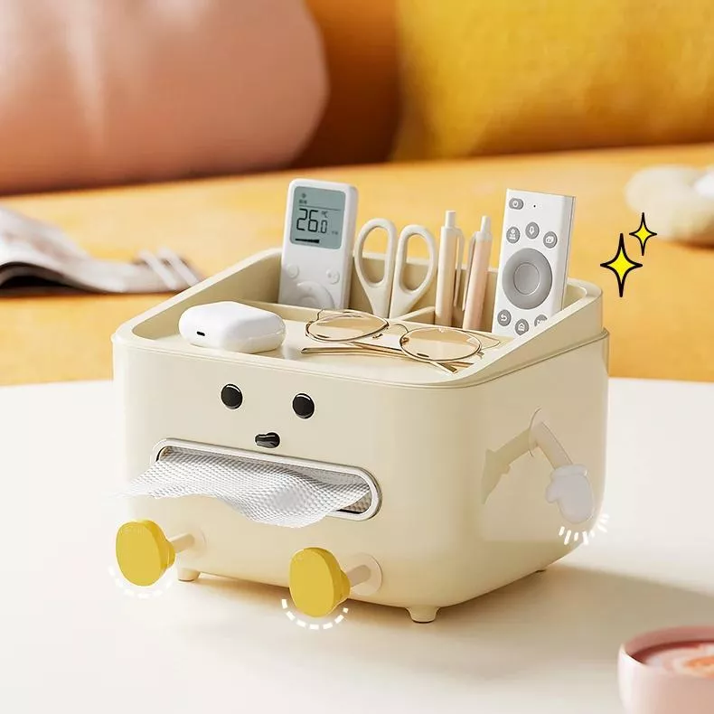 Crafted from high-quality, eco-friendly PP material, this storage box is durable, lightweight, and easy to maintain. Its spacious top section accommodates standard paper towel sizes, while the side and front compartments are ideal for storing remote controls, phones, notepads, glasses, or small accessories. The compact design allows it to fit perfectly on coffee tables, nightstands, or desks without taking up too much space.