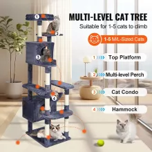 Transform your home into a paradise for your feline friends with this multi-level cat tree tower. Designed to meet the playful and relaxing needs of your cats, this activity center offers endless fun and comfort. With multiple levels, scratching posts, cozy nooks, and playful hanging toys, your cats will enjoy an all-in-one space for climbing, lounging, and scratching. It’s the perfect haven for 1-5 medium to large cats, providing plenty of room for exploration and rest.