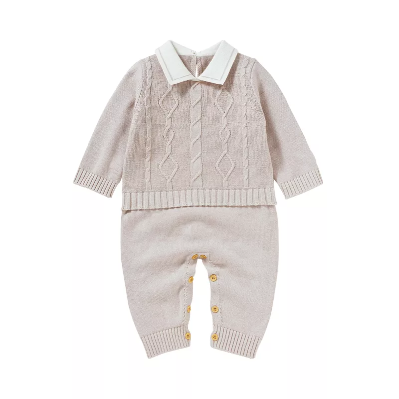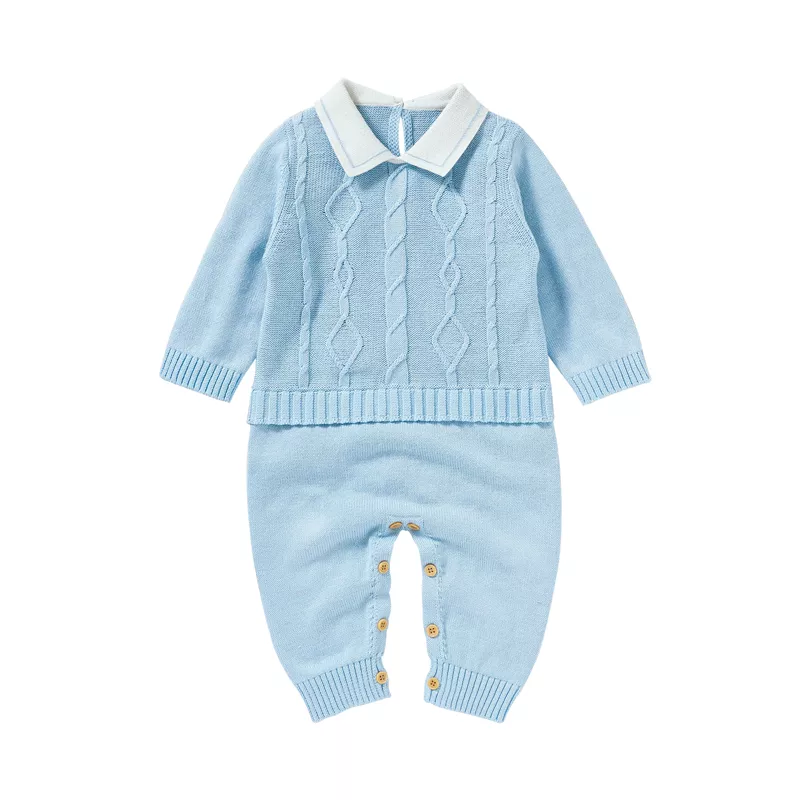 Wrap your little one in pure comfort with this 100% cotton knit newborn romper. Designed for infants and toddlers from 0 to 12 months, this one-piece outfit brings together cozy softness and timeless style. The breathable knit fabric keeps your baby comfortable all day, while the gentle stretch allows freedom of movement during play, naps, and snuggles. Its solid color and classic turn-down collar make it a perfect choice for both casual days at home and special outings.