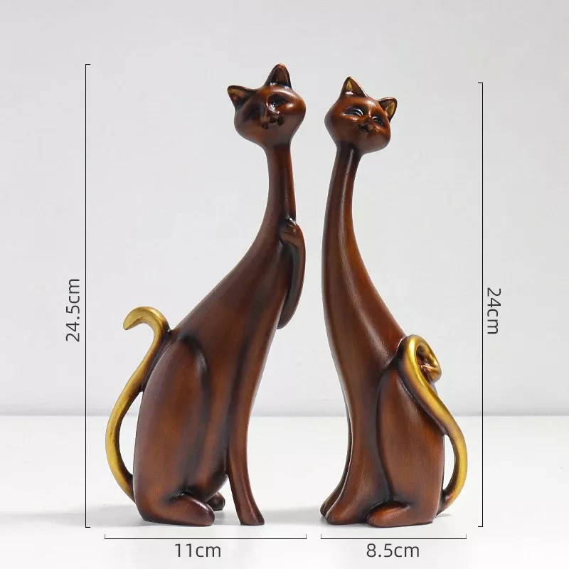 Nordic Abstract Couple Cat Resin Sculpture – Modern Home Decor Ornament