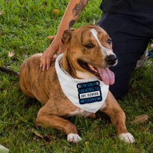 Bright design and high-quality materials are what distinguish Only Talking to My Human Pet Bandana. We guarantee that the fabric will not fade or stretch, and your pet will be able to wear this bandana for many years.