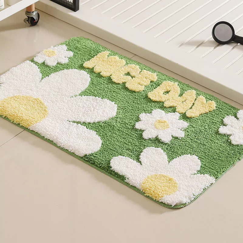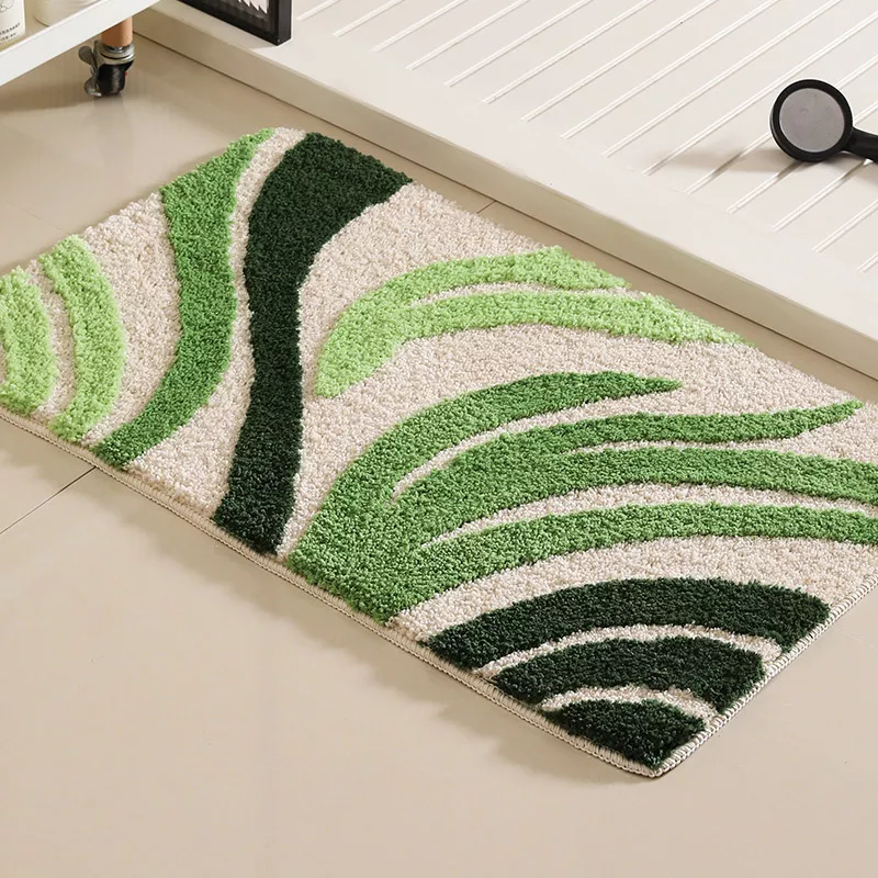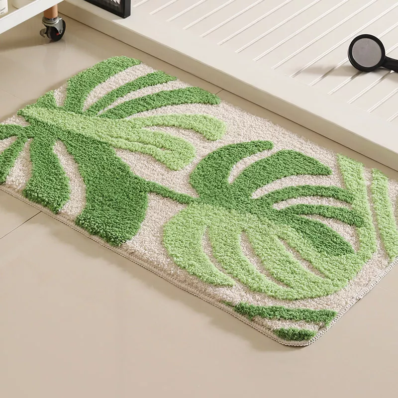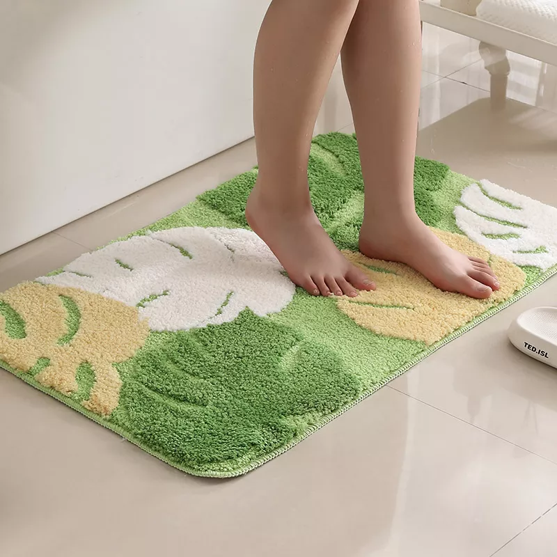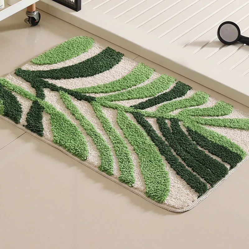Transform your bathroom or kitchen into a cozy, welcoming space with this beautifully designed anti-slip floor mat. Featuring a delicate pattern of green leaves and small flowers, this mat adds a touch of pastoral charm while keeping your floors safe and dry. Its soft flocked surface feels luxurious underfoot, making every step a comfort-filled experience.