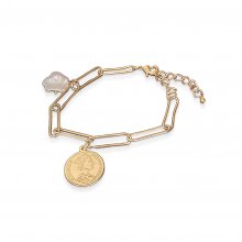 Our long-time priority is to make sure that our customers are happy with our products. Try this incredible piece of jewellery and see for yourself. Jewelry materials: brass. Shape: a round bracelet with a coin and a pearl-imitation bead. Color: golden.