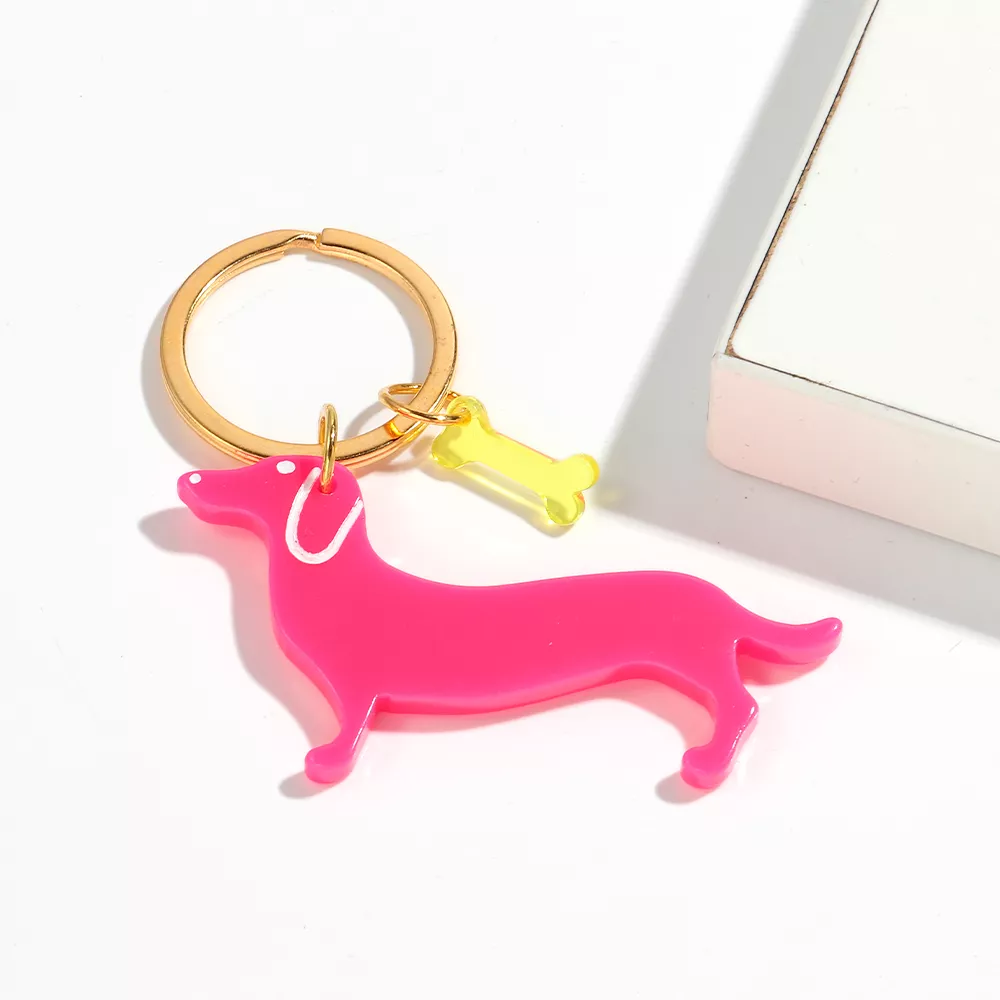 Each keychain features a sleek acrylic dog and bone pendant in a vibrant leopard pattern with neon pink accents — a stylish nod to modern pet lovers. The durable zinc alloy O-shaped buckle ensures secure attachment to any keyring or bag. Crafted with care and made from high-quality resin and metal, it’s built to last while keeping its glossy, eye-catching look.