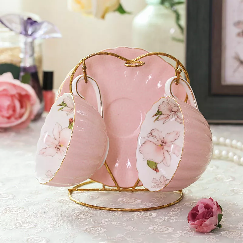Elegant Pink Porcelain Cup & Saucer Set
