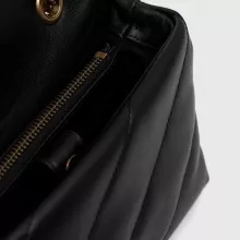 The Pinko shoulder bag is thoughtfully designed with a sleek and plain black exterior, making it versatile for any outfit. Its compact size of 6.7 x 9.8 x 3.9 inches strikes the ideal balance between spaciousness and portability. Featuring a secure clip fastening, your belongings stay safe while being easily accessible. The adjustable shoulder strap ensures a comfortable fit, allowing you to carry it with ease throughout the day.