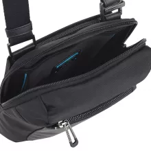 Meticulously crafted from an innovative blend of 45% RPET and 55% ECONYL, this shoulder bag is as sustainable as it is durable. Its classic black hue, accented by distinguished contrasting details and the subtle Piquadro logo, makes it a versatile choice for any outfit. Adjustable straps ensure a tailored fit, while multiple thoughtfully placed pockets keep your belongings effortlessly organized and accessible.