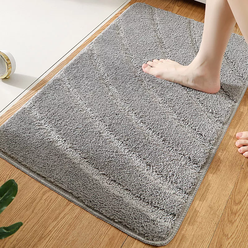 Step into comfort every time you enter your bathroom with this plush striped floor mat. Made from soft, dense polyester fibers, it gives your feet a warm, cushioned feel while adding a clean, modern touch to your space. The rhythmic stripe pattern and solid color design blend effortlessly with both classic and contemporary décor, making it as decorative as it is practical.