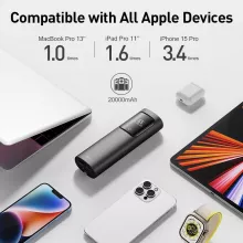 Keep your Apple devices charged wherever you go with this high-capacity 20000mAh 65W portable power bank. Engineered for power and convenience, it’s the ideal companion for MacBook Pro, iPhone, iPad, and more. The built-in USB-C cable ensures seamless charging without the hassle of extra cords, making it the perfect travel solution for professionals and tech enthusiasts alike.
