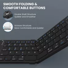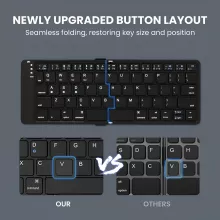 This Bluetooth keyboard is built for the modern professional, combining cutting-edge technology with user-friendly functionality. With a Broadcom US Bluetooth 5.1 chipset, enjoy low latency and stable connections every time you type. The ability to sync up to three devices simultaneously and switch between them at the press of a button makes this keyboard a multitasker’s dream. Its staggered folding design ensures comfortable typing without sacrificing portability, while the smart power-saving feature enhances its efficiency.