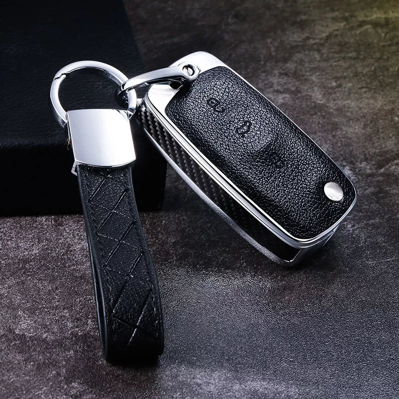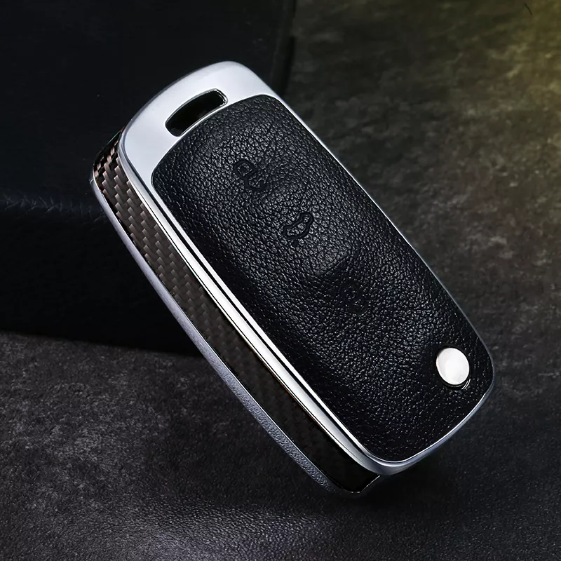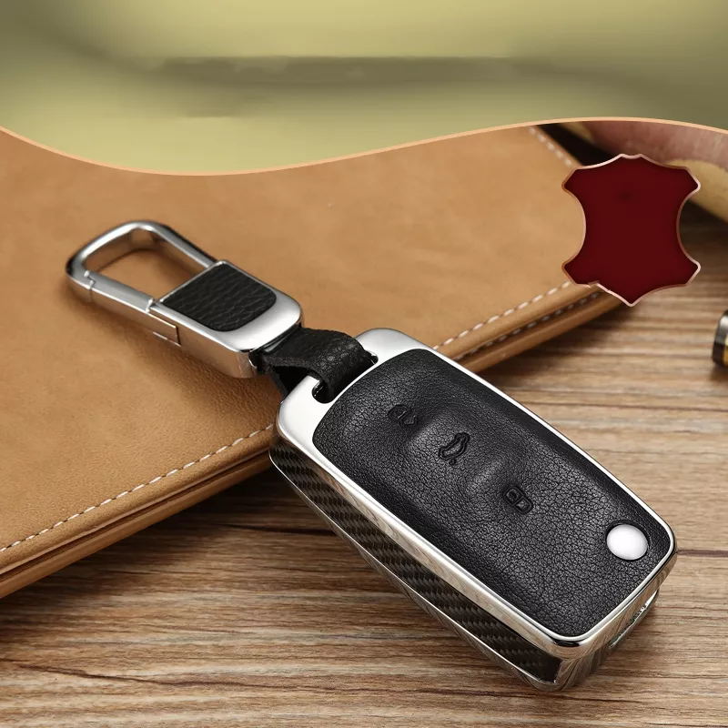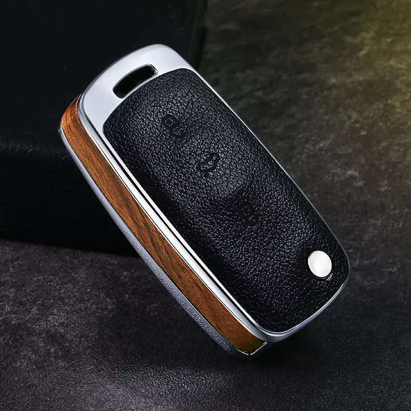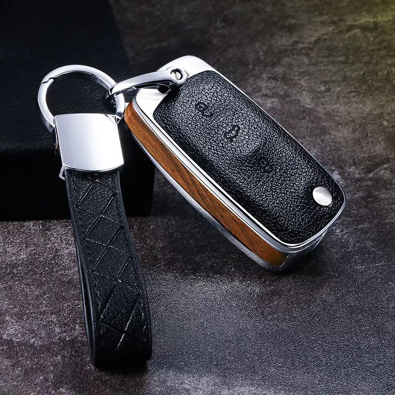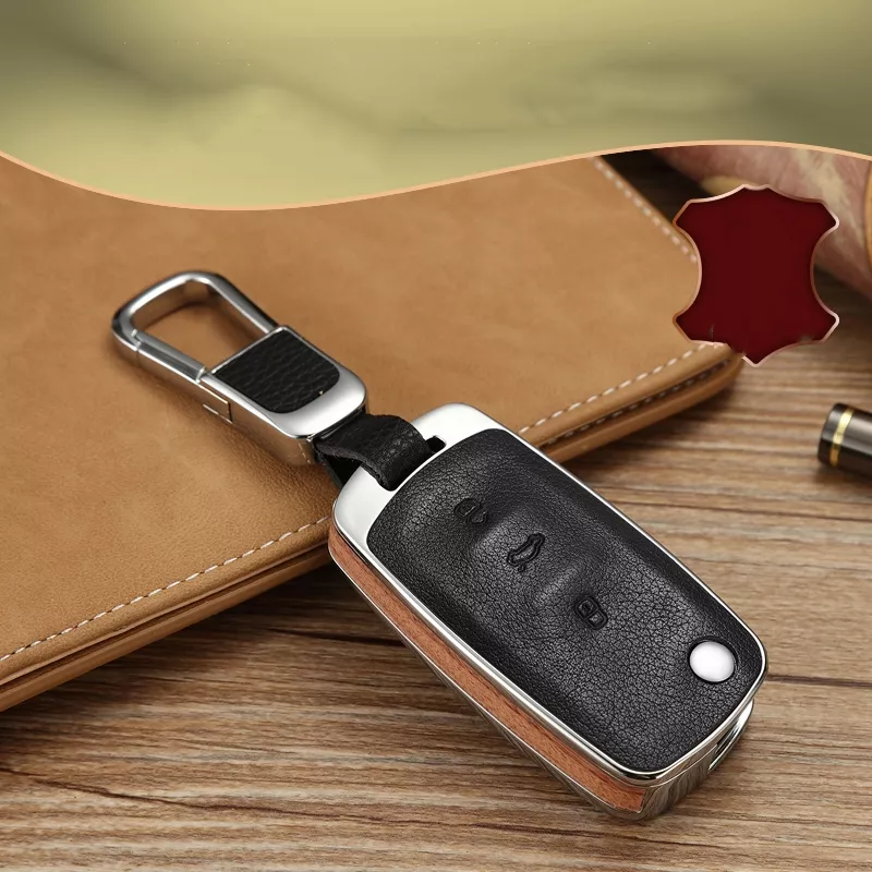 Protect your car key in style with this premium Alloy Leather Car Key Case. Designed specifically for various Volkswagen models, this sleek and durable case offers an ideal solution to safeguard your key fob from scratches, dust, and damage while adding a touch of elegance. Crafted from high-quality galvanized alloy combined with a luxurious wood/carbon fiber finish, this key case is as durable as it is fashionable. The lightweight yet robust construction ensures long-lasting protection and a secure fit for your key.
