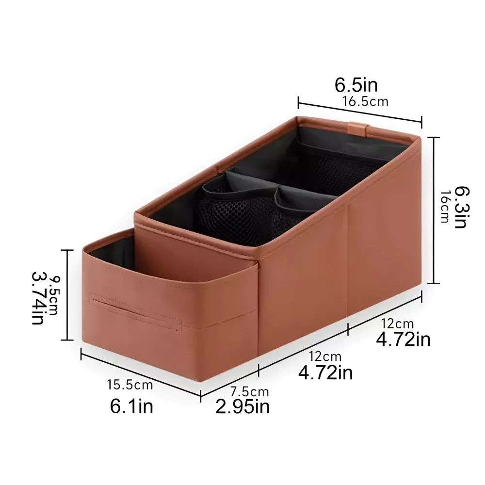 Unlike ordinary car organizers, this product combines elegance with practical function. Its refined leather finish enhances your car’s interior, while the thoughtfully divided compartments make it easy to manage all your essentials. The built-in cup holder ensures your beverages are secure during travel, and the compact design allows it to fit in nearly any vehicle without interfering with comfort. Whether for daily commutes, weekend drives, or long-distance trips, this organizer keeps your car neat and your items within reach.