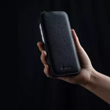 Made from premium genuine cowhide leather, each case is meticulously handcrafted to perfection. The natural texture of the leather makes every case unique, offering a top-grade feel and a timeless aesthetic. Its European-style flip-down opening not only provides easy access to your phone but also ensures that the screen remains protected when closed. This lightweight and sleek design adds no unnecessary bulk, making it a practical choice for everyday use.