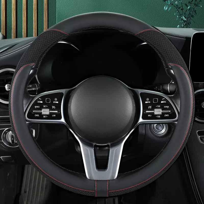 Upgrade your daily driving comfort with this premium leather and breathable mesh steering wheel cover. Designed to fit most standard steering wheels sized 14.5 to 15 inches, it adds a smooth, secure grip while protecting your wheel from wear, fading, and cracking. Whether you’re commuting to work, taking a long road trip, or just running errands, this cover makes every drive feel more comfortable and controlled.