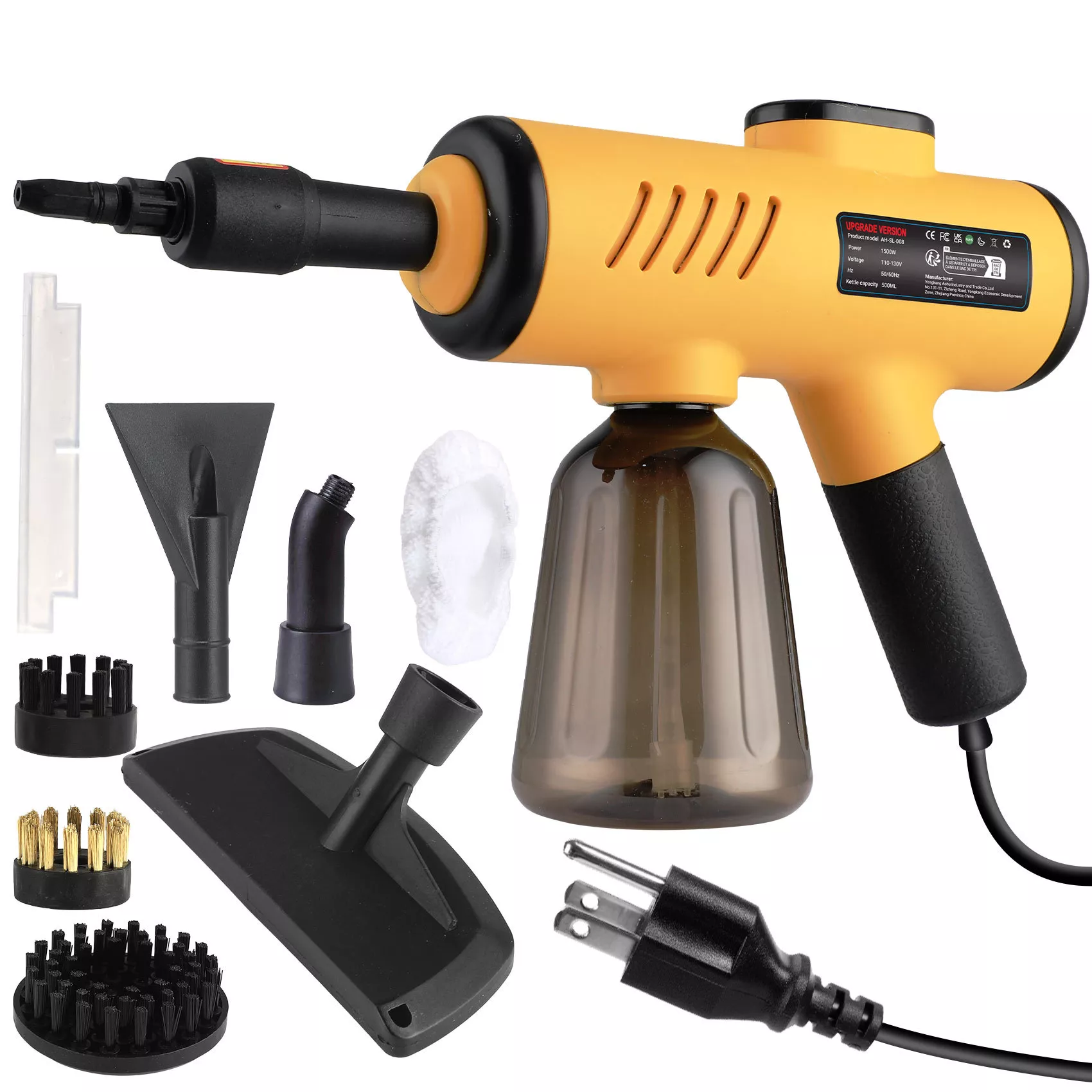 Pressurized Handheld Steam Cleaner with 8 Accessories for Home & Car Cleaning