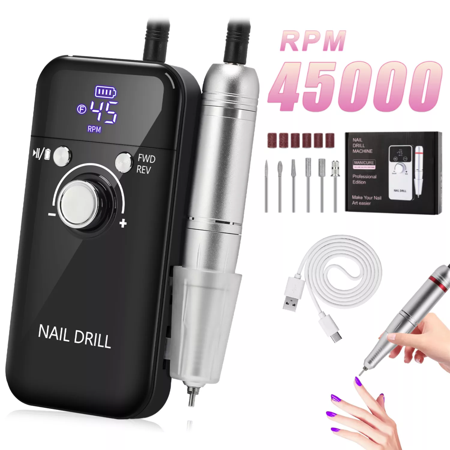 Professional 45000RPM Portable Nail Drill Machine with LCD Display