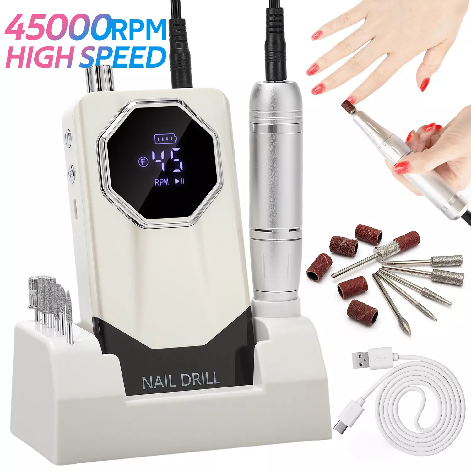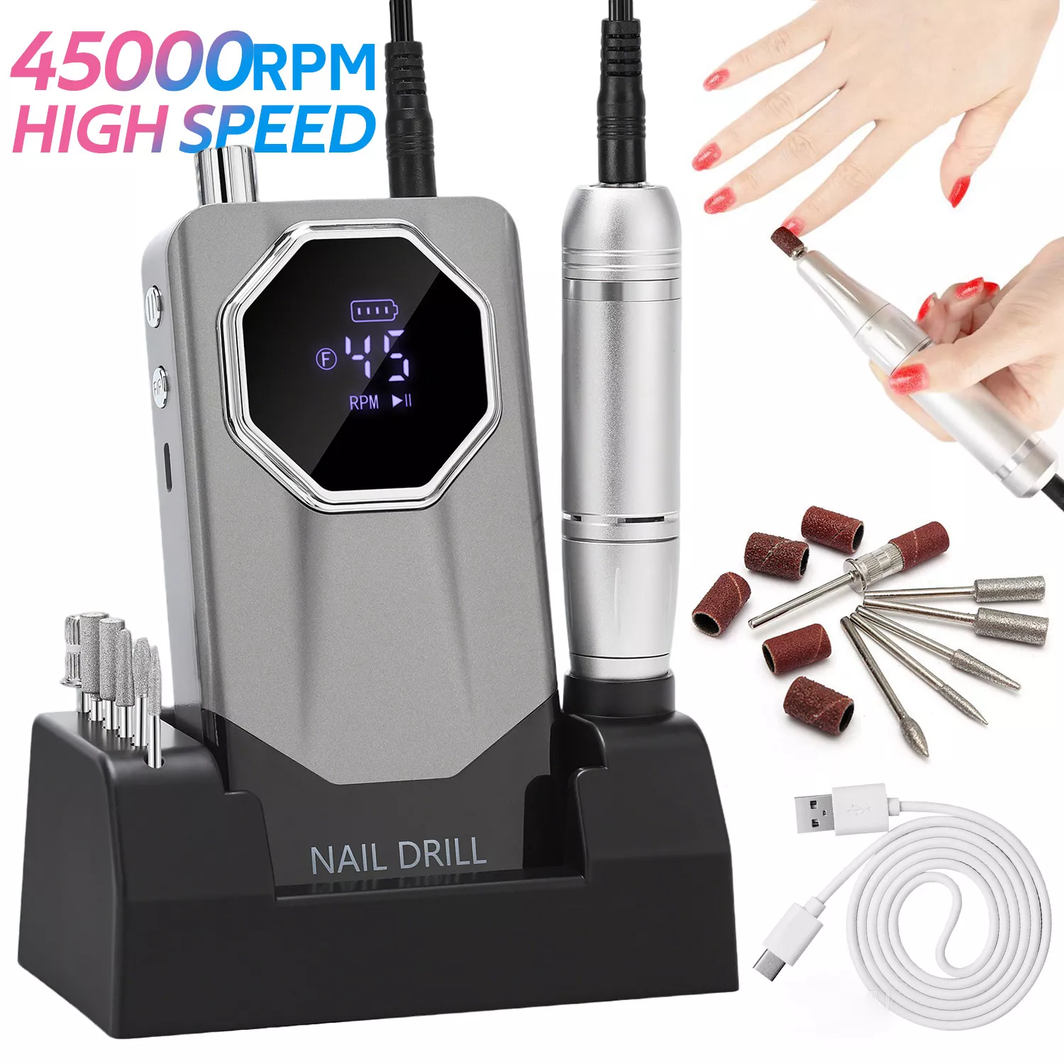Transform your nail care routine with this powerful 45000RPM Professional Nail Drill Machine. Designed for precision, comfort, and convenience, this electric nail file is perfect for polishing, shaping, buffing, and removing gel polish effortlessly. Whether you are a beginner experimenting with nail art at home or a seasoned nail technician working in a salon, this portable nail drill ensures flawless results every time.