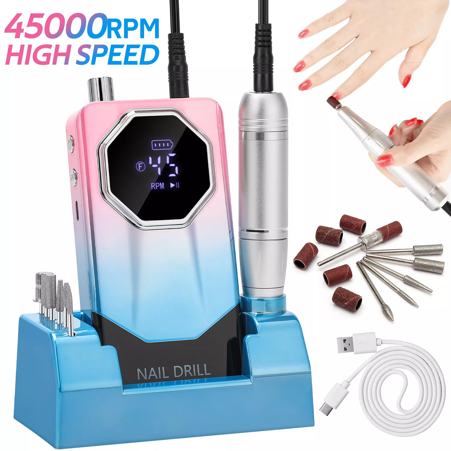 Upgrade your manicure and pedicure routine with this professional 45000RPM nail drill machine. Designed for both personal and professional use, it combines style, efficiency, and performance in one sleek package. Make every nail session smooth, easy, and enjoyable. Add it to your nail care essentials today and achieve stunning nails anytime you want!
