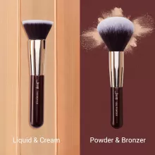 Each brush in this set is thoughtfully designed to ensure a seamless makeup experience. With a mix of natural and synthetic hair, these brushes are soft, dense, and expertly crafted to pick up and blend products effortlessly. The elegant Zinfandel-inspired wooden handles, enhanced with bronzing accents, not only look stunning but also provide a comfortable grip. Durable golden ferrules securely hold the brush heads for worry-free use.