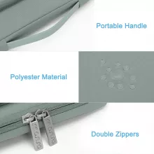 This laptop sleeve is crafted with high-quality polyester material, featuring a 360-degree reinforced interior edge for comprehensive protection. The polyester foam padding and soft, fluffy interior cushion safeguard your laptop against accidental drops, shocks, and scratches. The side-opening zipper design ensures your device stays secure while being carried.