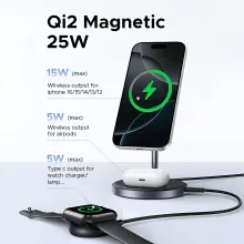 - Qi2 25W Power Output: Charge up to 3 devices simultaneously with up to 15W for iPhone, 5W for AirPods, and an extra 5W Type-C port for accessories.