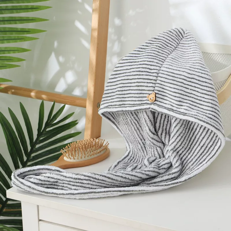 Upgrade your daily routine with the Coral Fleece Dry Hair Cap – a simple yet essential bathroom accessory designed to make hair drying faster, easier, and more comfortable. Made from soft polyester coral fleece, this lightweight cap offers strong water absorption that dries your hair in just minutes without the need for heat styling. Its striped geometric pattern adds a modern touch, making it both functional and stylish.