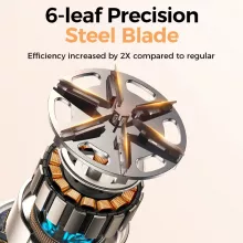 - Quick and Efficient Performance: The six-leaf stainless steel blades and powerful motor double efficiency, saving time and effort.