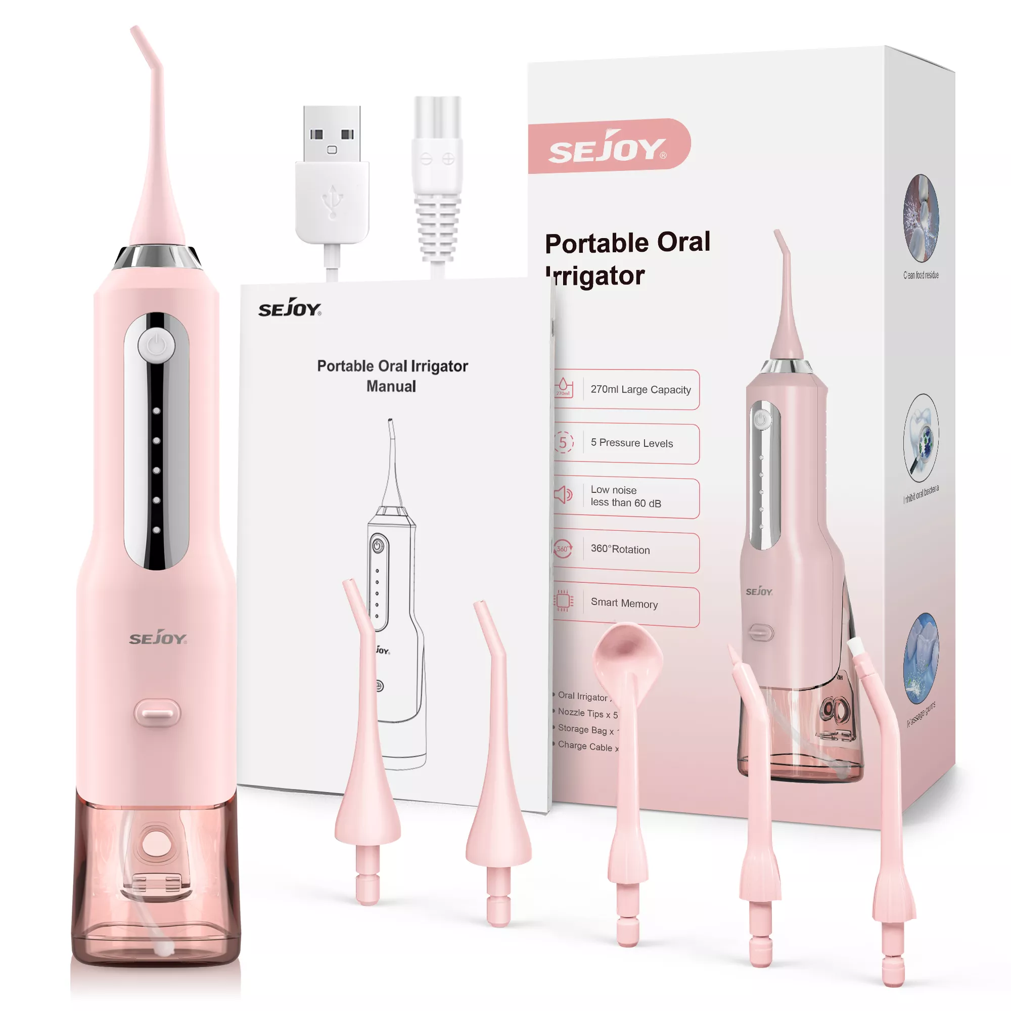 This electric oral irrigator is built around a smart pulse-jet system that removes debris and plaque with ease. With 5 interchangeable nozzles and 4+ cleaning modes, you can tailor each session to your personal comfort. Its rechargeable power source ensures long-lasting use, while the spacious water tank holds approximately 7–10 fl oz, giving you plenty of time for a thorough clean.