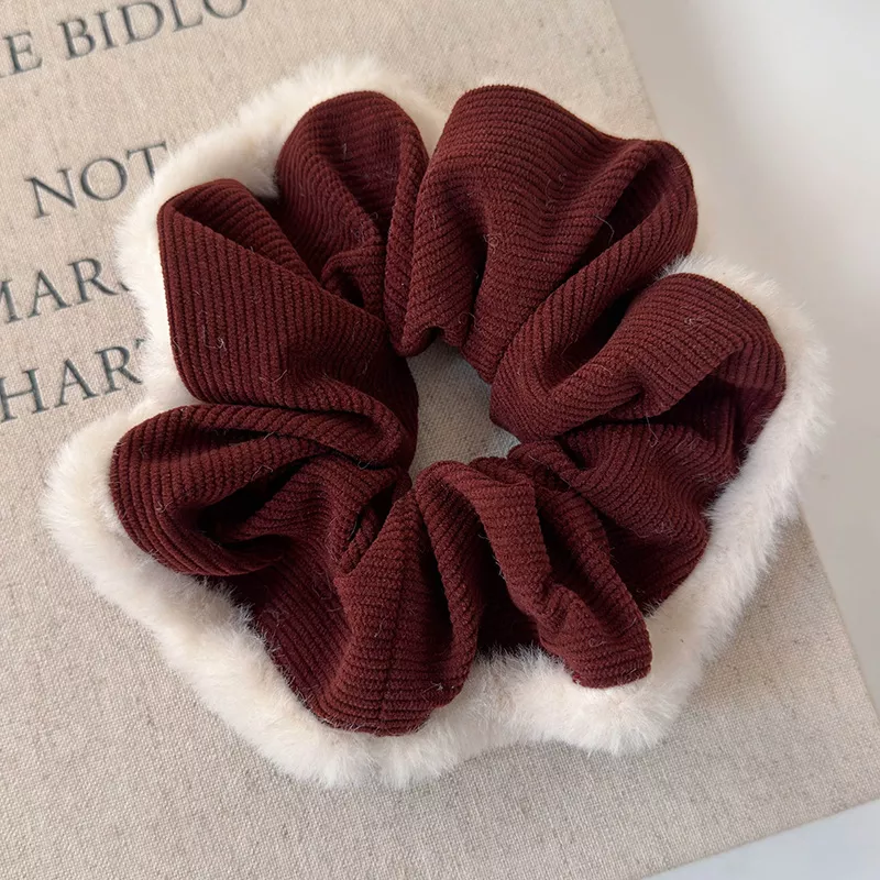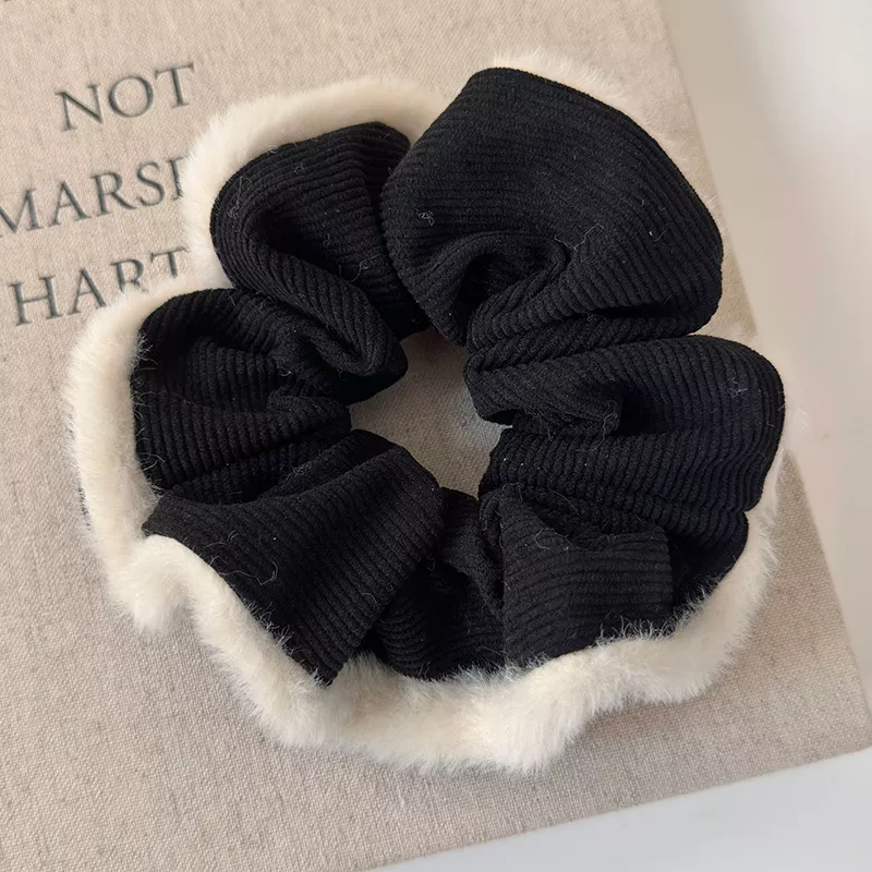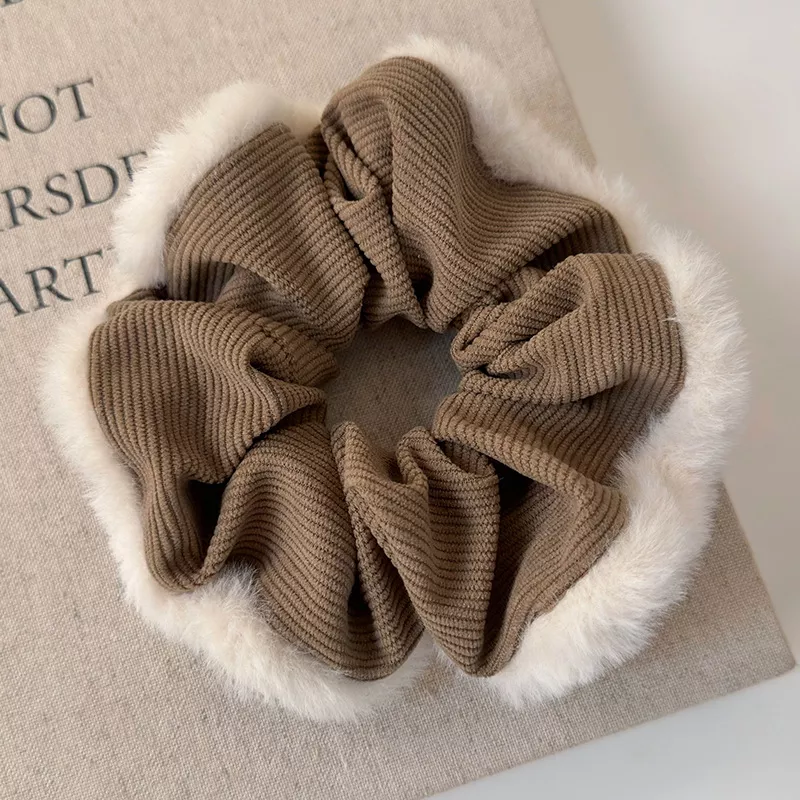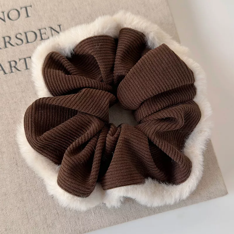 This accessory combines the nostalgic feel of retro corduroy with modern practicality. Its large, plush design not only keeps your hair secure but also serves as a stylish statement piece. The simple yet eye-catching geometric pattern ensures it complements almost any outfit. Whether you’re styling a messy bun for a relaxed afternoon or adding the finishing touch to your weekend look, this scrunchie and headband set elevates your hair game effortlessly.