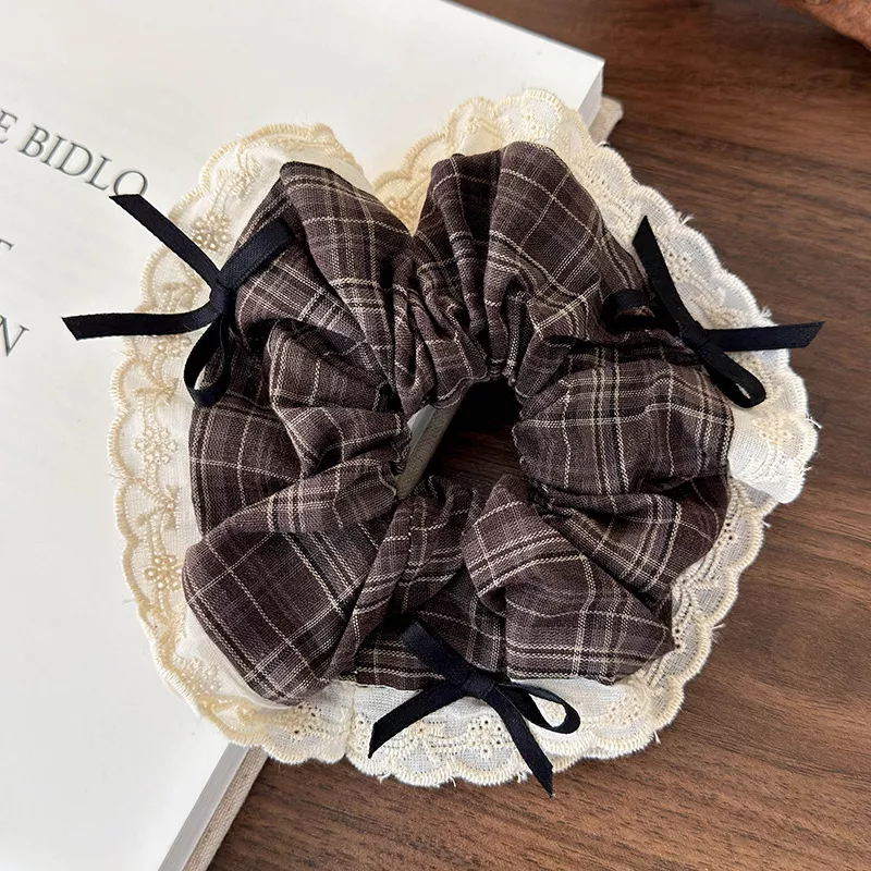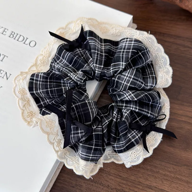 Embrace Elegance with Our Retro Plaid Lace Hair Scrunchies