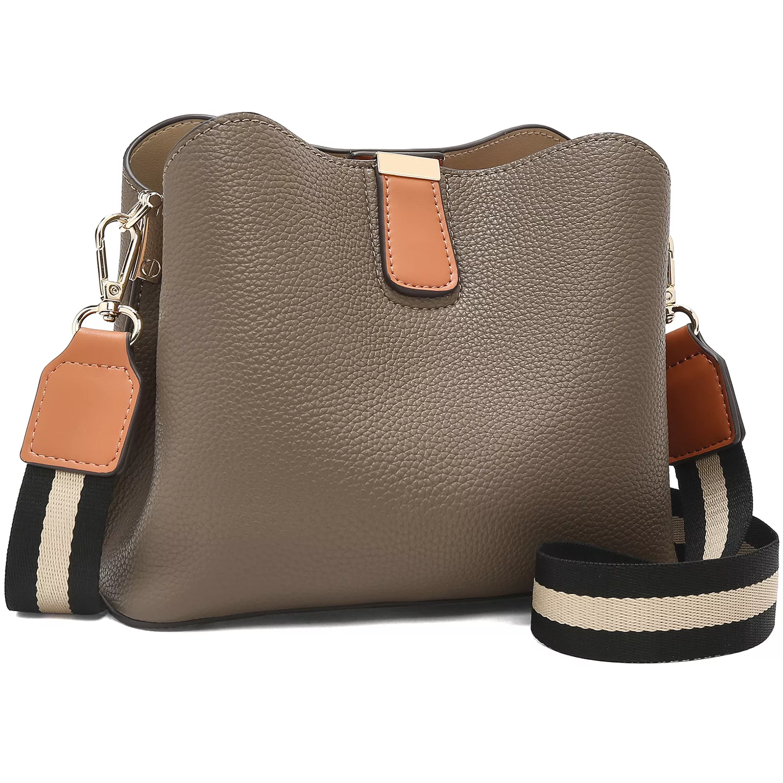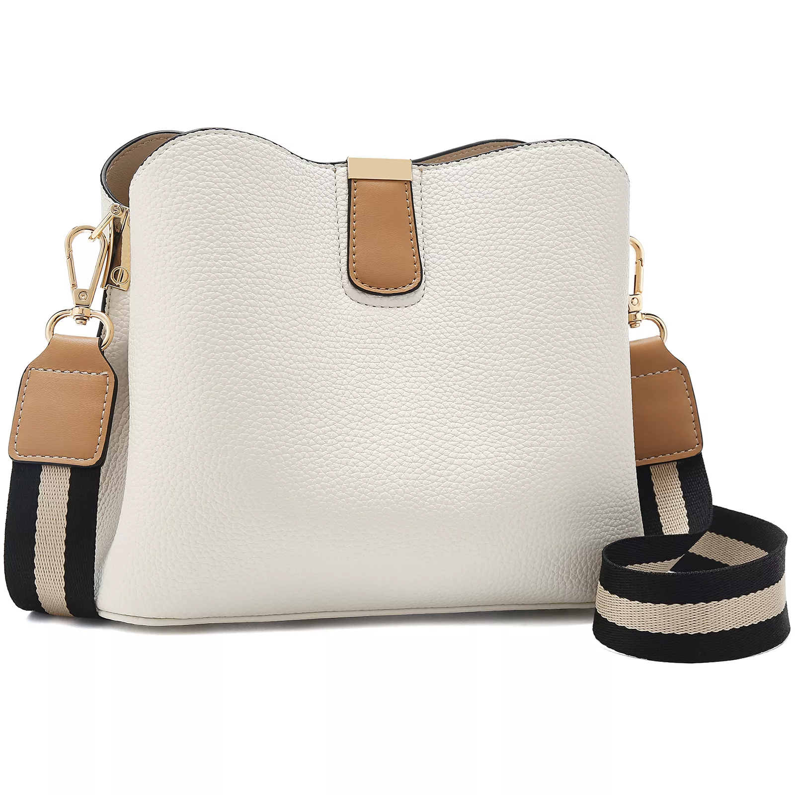 This spacious shoulder and crossbody bag offers a well-organized interior featuring a slot pocket, zipper pocket, and compartment that keep your daily necessities neatly arranged. The exterior flap pocket provides quick access to small items you use often. With a secure zipper and hasp closure, your belongings stay safe on the go. Its bucket shape and generous capacity make it perfect for carrying items like your phone, wallet, small notebook, makeup pouch, and more—without ever feeling bulky.