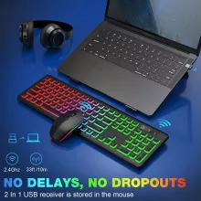 Why settle for ordinary? Upgrade to the RGB Backlit Wireless Keyboard and Mouse Combo and enjoy unmatched comfort, style, and convenience. Order now and elevate your workspace to the next level!