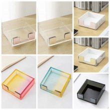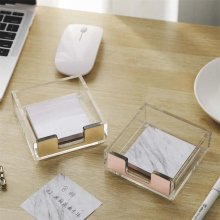 Our Rose Gold Acrylic Sticky Notes Holder stands out with its striking rose gold hue, bringing a touch of glamour to your workspace. The clear acrylic design not only adds a modern aesthetic but also allows you to easily see your notes. Its sleek lines and minimalist design complement any decor, making it a versatile accessory for all types of office environments.