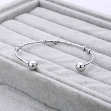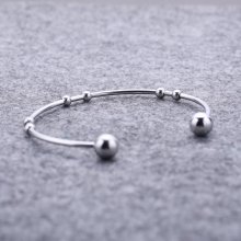 The silver plated bracelet is made of stainless steel. It is an adjustable piece of jewelry with an inner diameter of 2.3 in. and the wire diameter of 0.08 in. The welded steel balls measure 2.3 x 0.08 in. and 0.16 x 0.2 in.