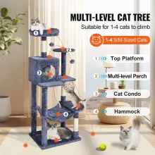 - Cozy Resting Areas: Includes a private cat condo, a soft hammock, and a plush top perch—ideal for relaxing, napping, or simply enjoying the view.