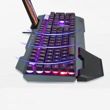 The semi-mechanical keyboard mimics the precision of a full mechanical keyboard, ensuring rapid response and comfortable key travel for marathon sessions. Equipped with an ergonomic design, it includes a suite of multimedia keys for quick control and shortcuts that enhance your gameplay efficiency. It’s more than a keyboard; it’s your command center, complete with a phone holder, pen tray, and card slot for ultimate convenience.