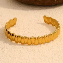 Make a stunning statement with the Smooth Teardrop Shape Cuff Bracelet. Designed to reflect a refined sense of style, this bracelet combines smooth, flowing lines with the luxurious shine of 18K gold plating. Crafted from high-quality 316L stainless steel, it’s the perfect piece for women who appreciate elegance and modern sophistication. Whether you’re dressing up for a special event or looking to add a touch of luxury to your everyday ensemble, this cuff bracelet is the ideal choice.