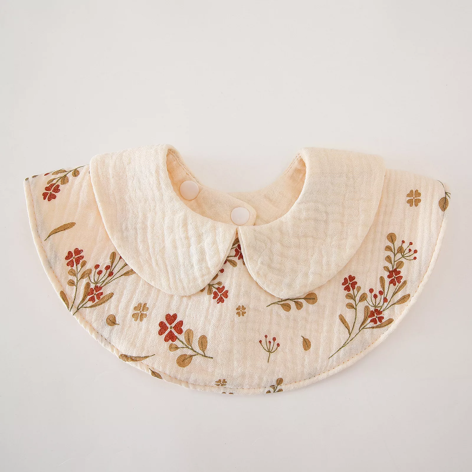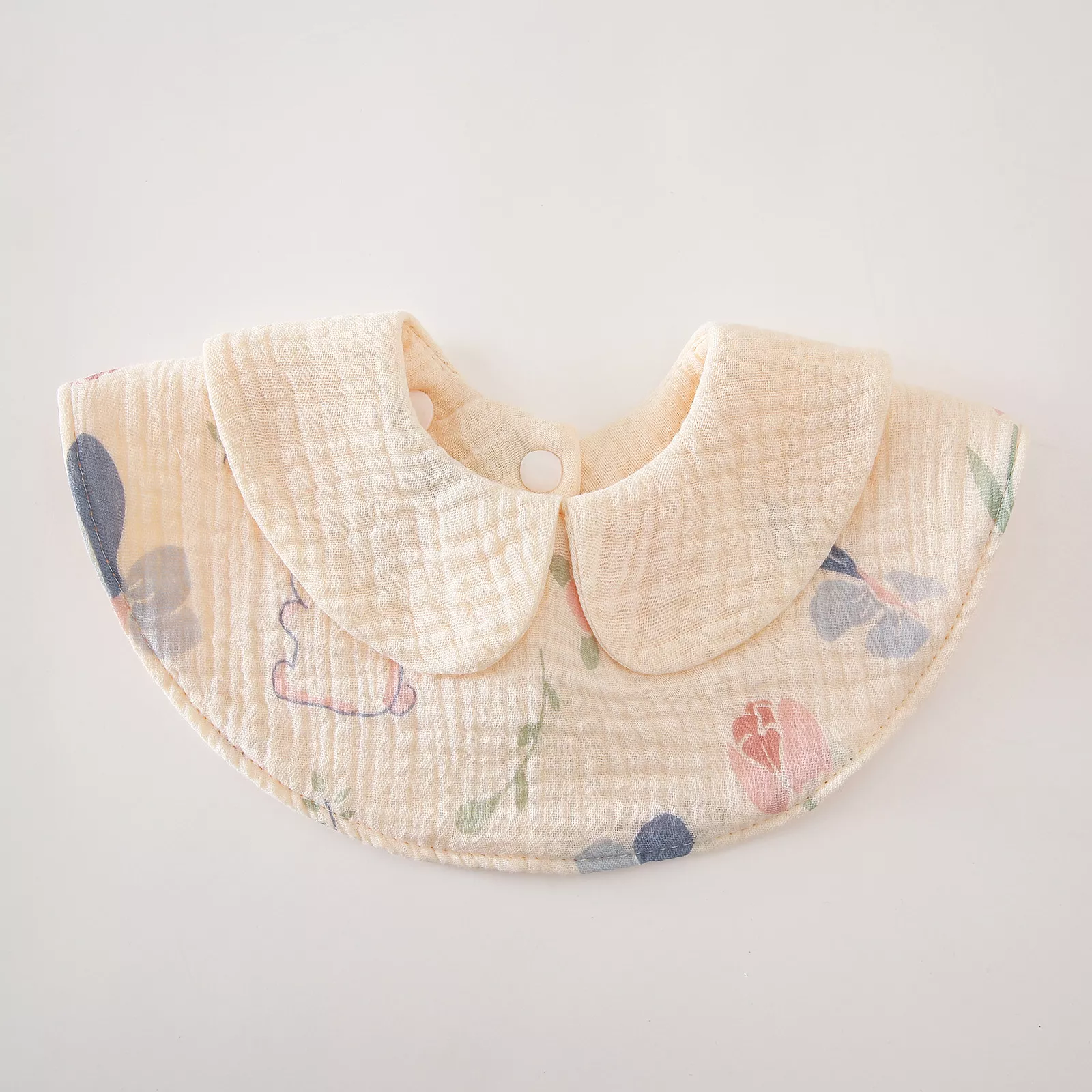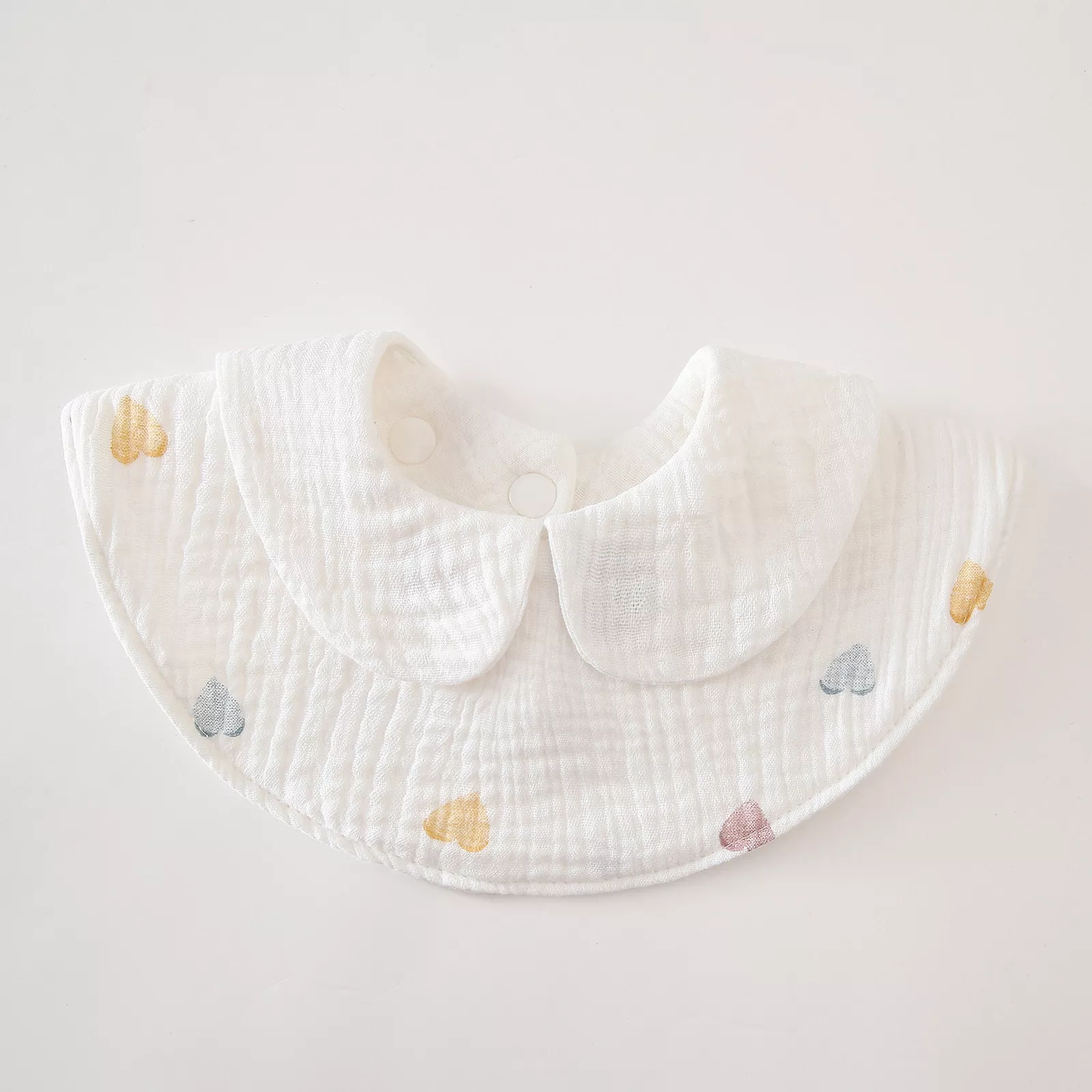 Featuring a sweet, printed collar-style design, this bib adds a playful touch to any outfit while offering reliable protection. Its lightweight cotton gauze absorbs quickly, making it ideal for everyday use—whether at home, on a walk, or enjoying snack time. The unisex style makes it a wonderful choice for any baby, while the soft texture ensures all-day comfort.