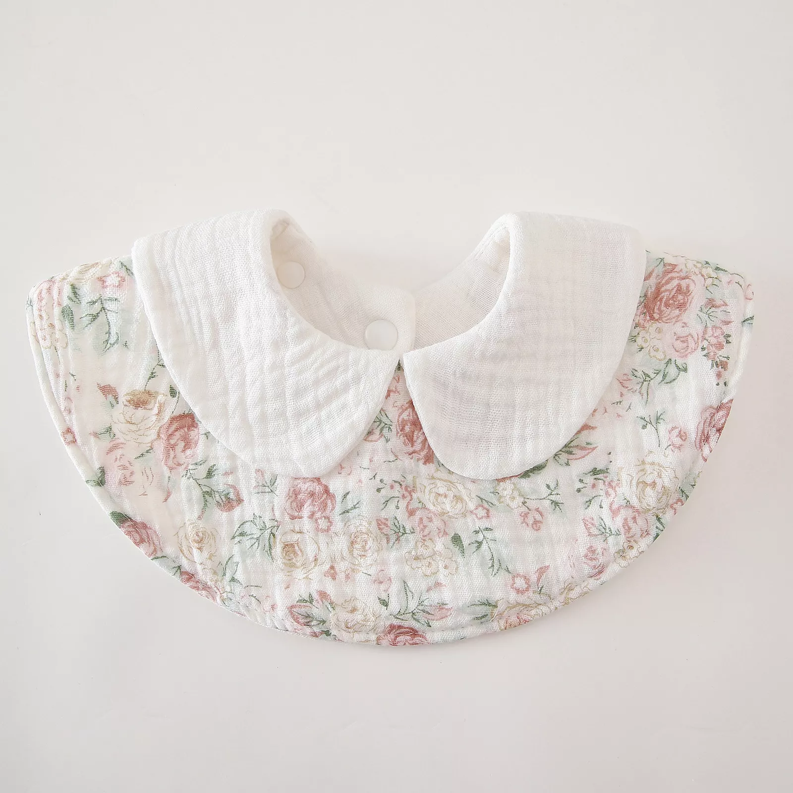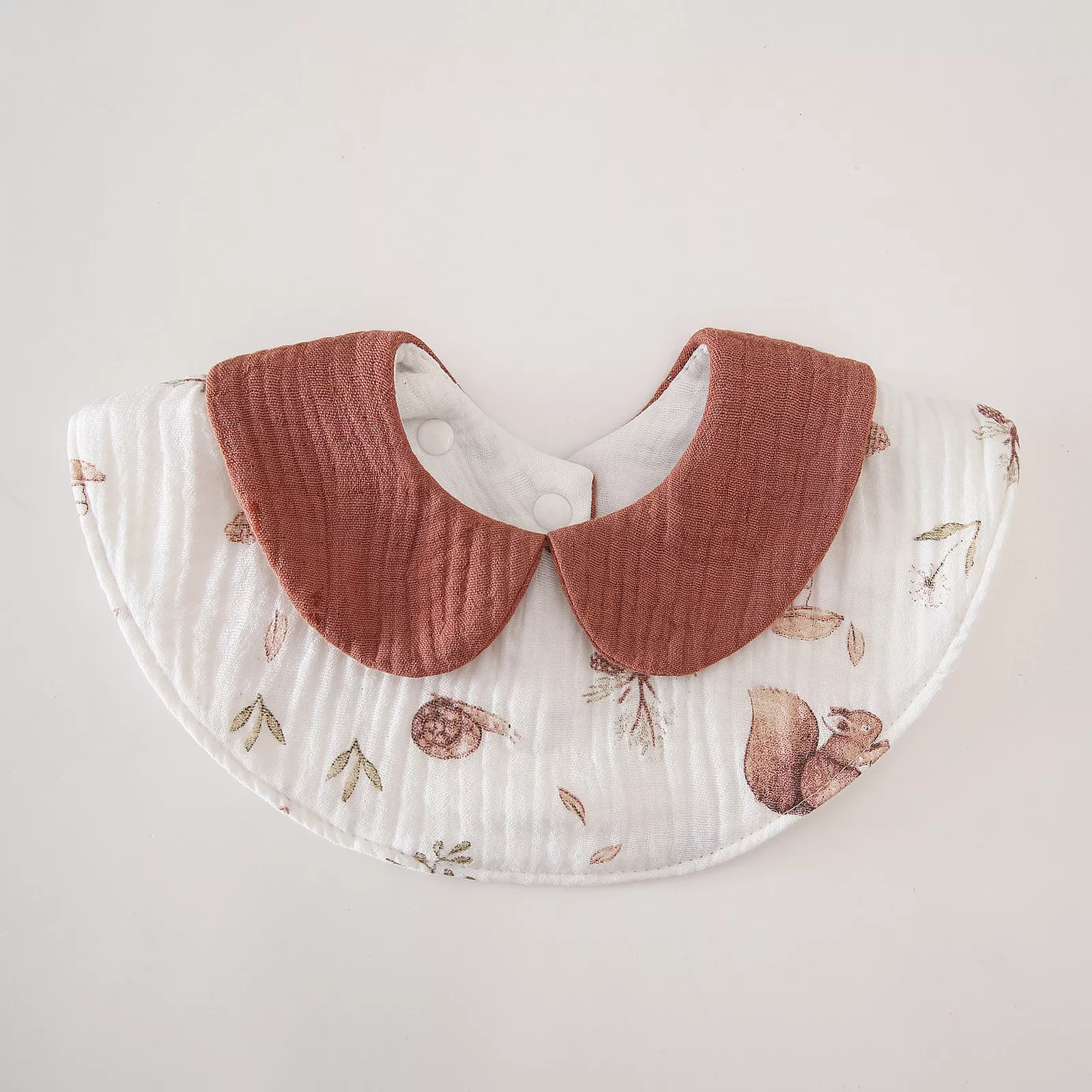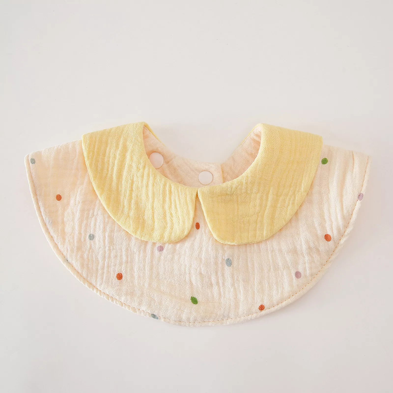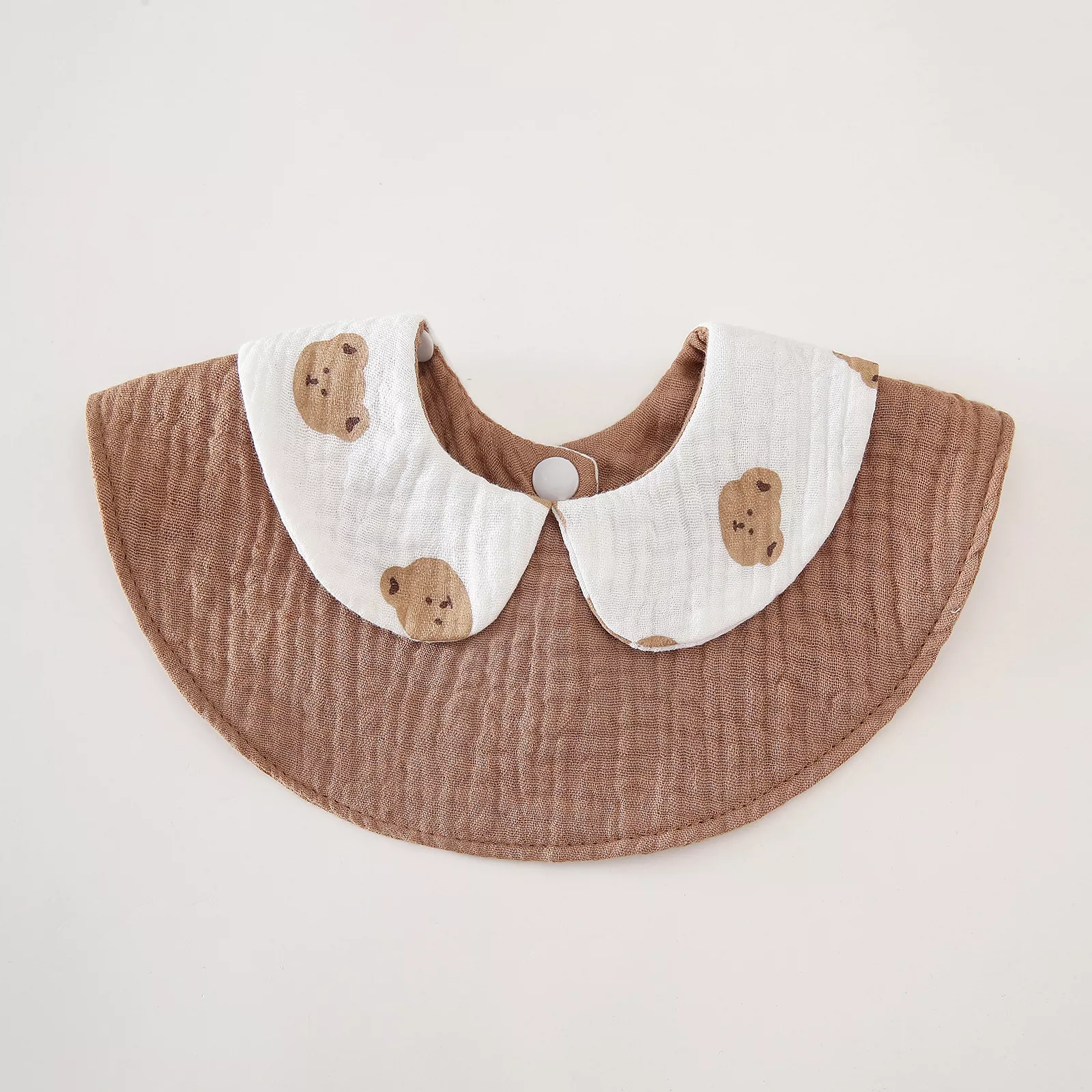 Featuring a sweet, printed collar-style design, this bib adds a playful touch to any outfit while offering reliable protection. Its lightweight cotton gauze absorbs quickly, making it ideal for everyday use—whether at home, on a walk, or enjoying snack time. The unisex style makes it a wonderful choice for any baby, while the soft texture ensures all-day comfort.
