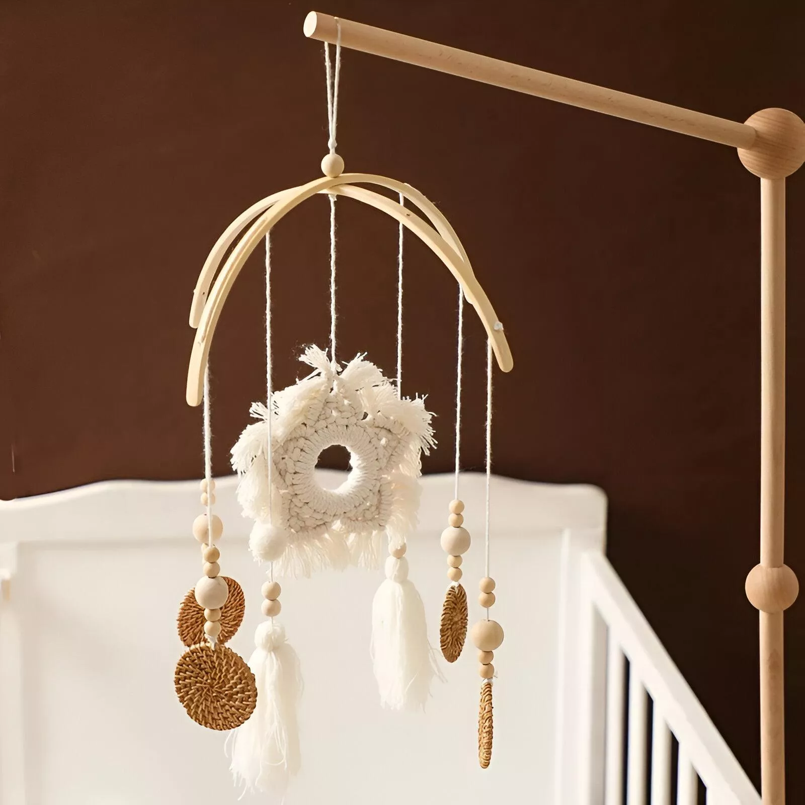 Every detail of this mobile has been crafted to create a safe, engaging, and peaceful environment for your child. The wooden holder offers a natural, warm touch, while the plush felt figures invite curiosity and early visual stimulation. Measuring approximately 5.5 to 6 inches in size, each hanging piece is the perfect scale for tiny eyes to focus on without overwhelming them.