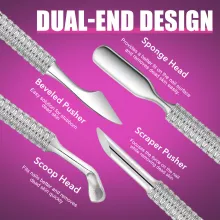 - Dual Functionality: Combines a pusher and cuticle remover for efficient use.
