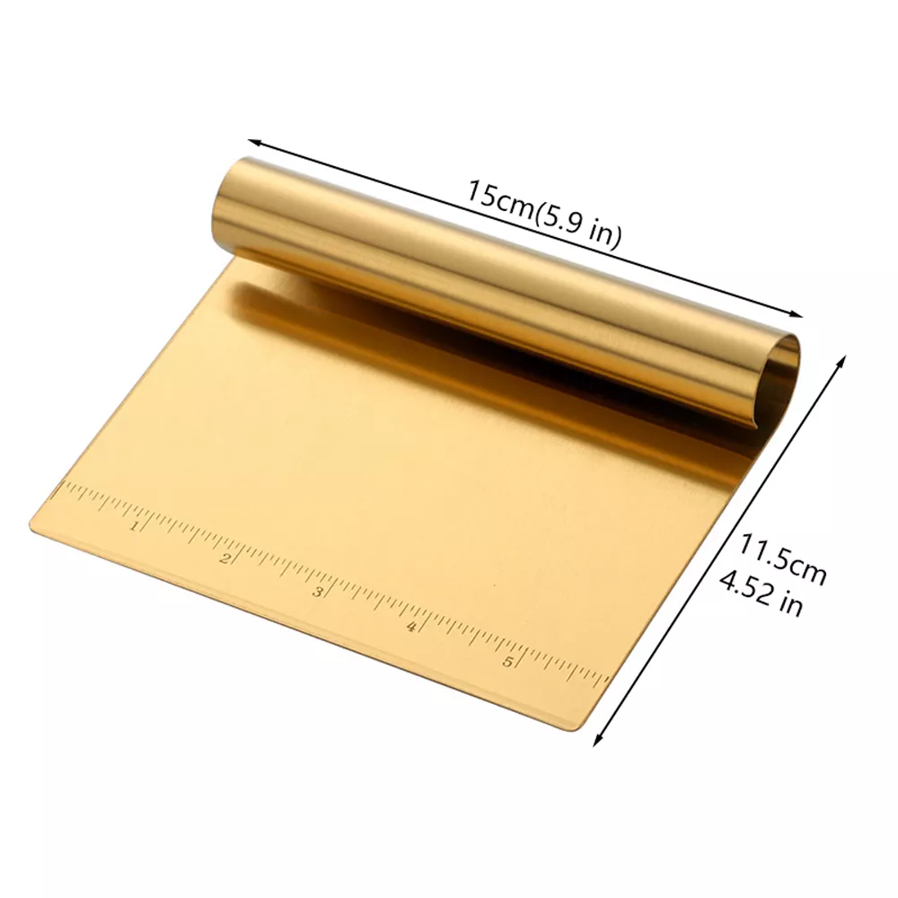 Bring professional quality into your kitchen with this elegant and functional Gold & Silver Pastry Dough Cutter. Designed for home bakers and seasoned chefs alike, this stainless steel scraper and chopper is your all-in-one solution for prepping dough, slicing pizza, and even measuring portions with exact accuracy. Its sleek silver and gold finish adds a modern, premium touch to your baking tools, while the durable stainless steel ensures long-lasting performance.