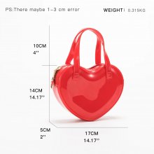 Our Heart-Shaped Jelly Tote Bag isn’t just a bag; it’s a statement piece that stands out. The soft PVC material ensures your bag stays new-looking through any adventure, while the zipper closure secures your items. Its unique heart shape and playful colors make it a perfect accessory for those who love to add a touch of whimsy to their wardrobe. Whether you’re stepping out for a casual day or dressing up for a night out, this bag adds the perfect pop of color and personality to your outfit.